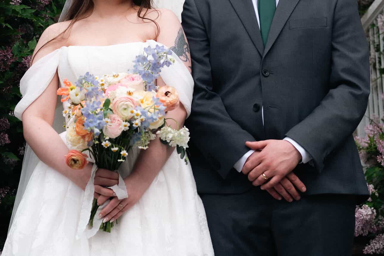 I offer full service garden gathered bouquets, boutonnières as well as table and ceremony arrangements and aisle flowers. I do not currently offer large floral installations, I'm still working on perfecting those skills :) Delivery and set up is available with a full service wedding.